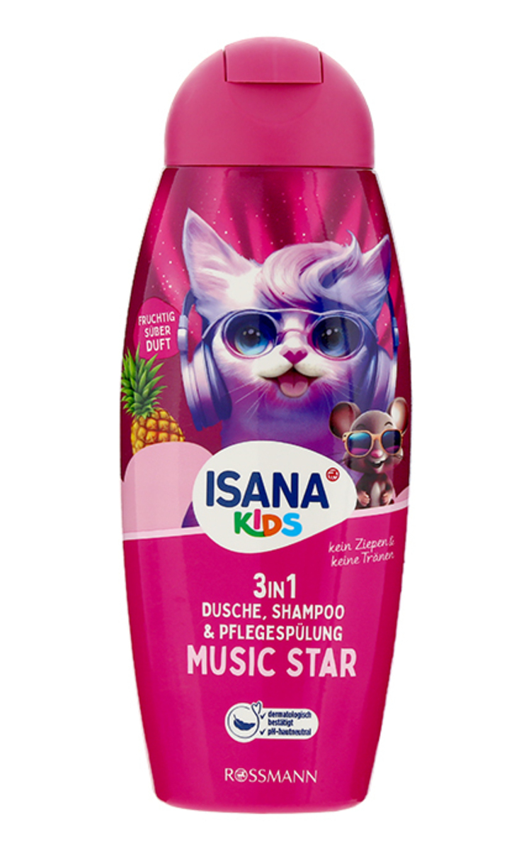 ISANA KIDS, MUSIC STAR, 3IN1, dušo gelis, šampūnas ir kondicionierius, 300 ml. 300 ml