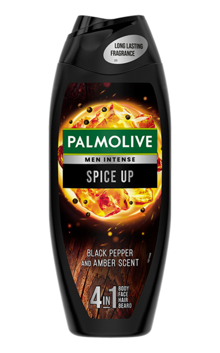 Palmolive Men Intense Spice Up dušo želė su ilgai išliekančiu juodųjų pipirų ir gintaro kvapu sustiprina kiekvieną dušo patirtį. Ši dušo želė yra 4 viename (4 in 1) ir skirta jūsų kūnui, plaukams, veidui ir barzdai. Padidinkite kiekvieno dušo intensyvumą ir pagyvinkite pojūčius naudodami Palmolive Men Intense Spice Up dušo želė. Šios dušo želės sudėtyje yra 95% natūralios kilmės ingredientų. 95% biologiškai skaidi formulė. Nėra mikroplastiko. Perdirbama pakuotė.