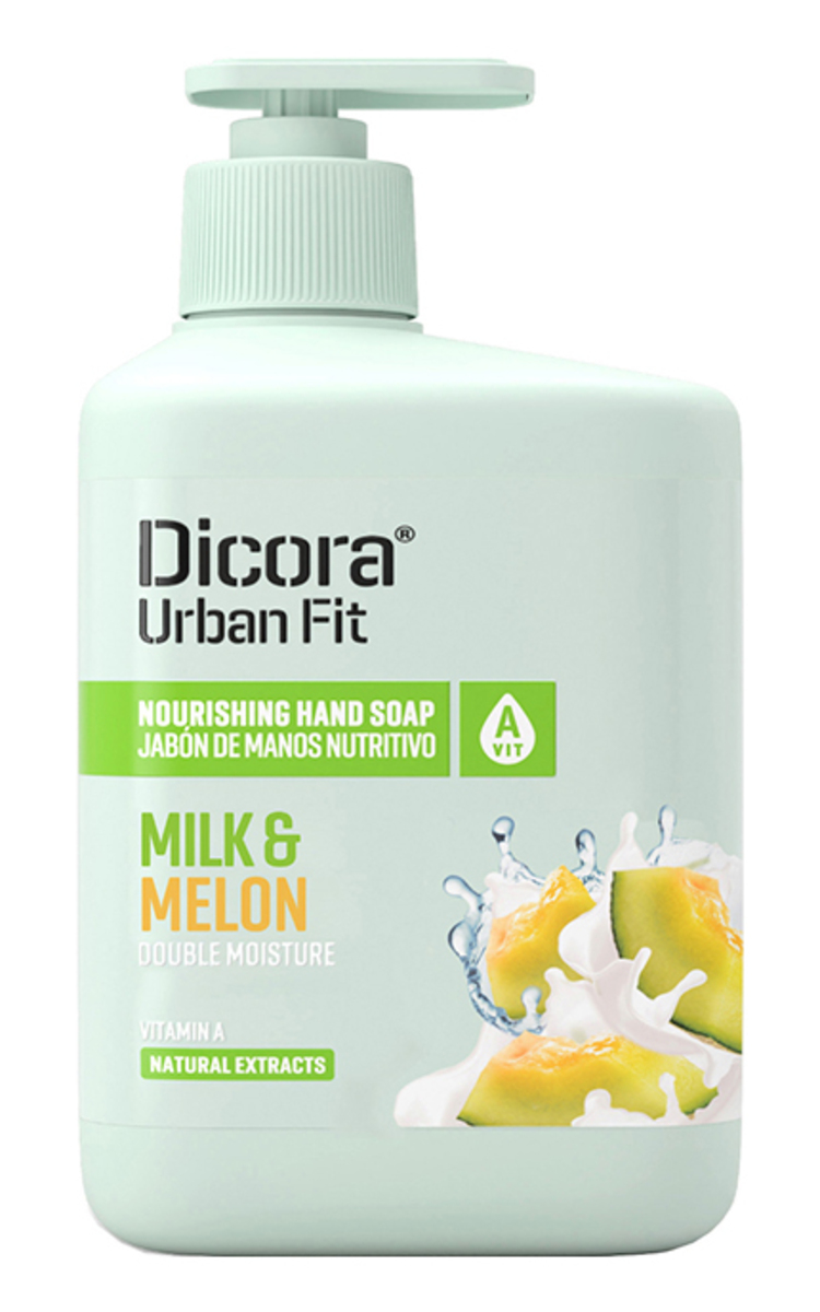 DICORA URBAN FIT maitinamasis rankų muilas BIO MILK & MELON su vitaminu A, saldžiu ir maloniu melionų ekstraktu bei pieno baltymais. Oda nuolat drėkinama, tampa švelni ir elastinga. Vitaminas A padeda gerinti odos atsparumą, ji atrodo jaunatviška ir sveika.