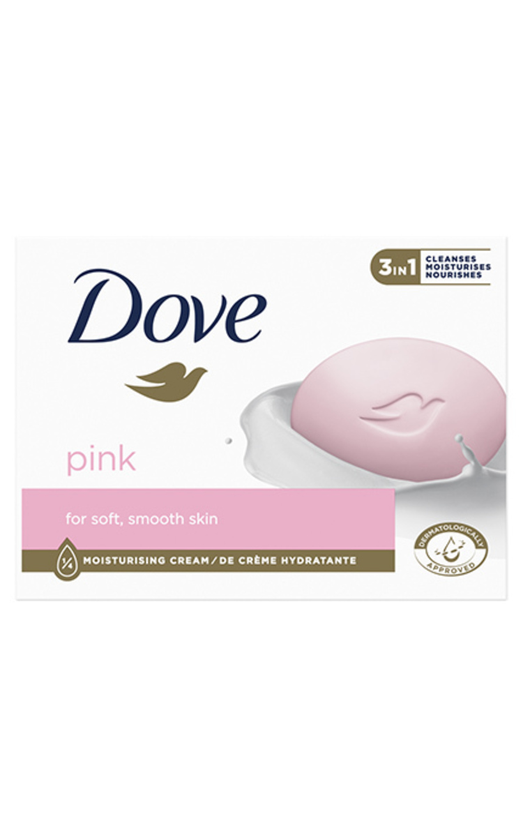 Dove Pink muilas švelniai valo, suteikia odai drėgmės, glotnumo ir spindesio.