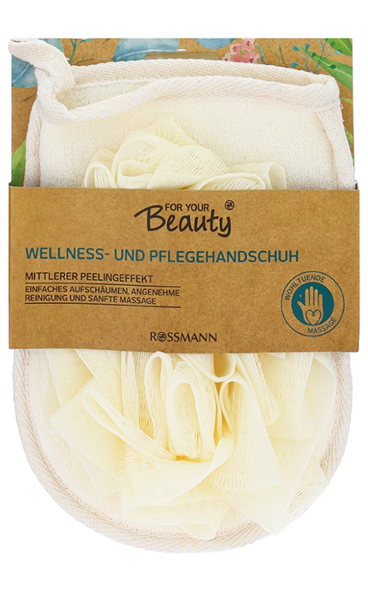 „For Your Beauty“ šveičiamoji prausimosi pirštinė užtikrina optimalų „trys viename“ rezultatą, nes yra sudaryta iš dviejų skirtingų medžiagų. Minkštoji pirštinės pusė užtikrina malonų prausimąsi ir lengvą šveitimą. Struktūruota pusė švelniai masažuoja ir suteikia stipresnį šveičiamąjį efektą. Pirštine galite šveisti ir masažuoti odą tokiu intensyvumu, kokio pageidaujate.