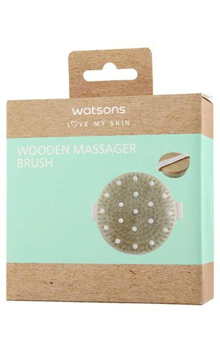 Watsons medinis kūno masažo šepetys. Masažo šepetį galima naudoti tiek sausą, tiek šlapią. Sudrėkinę šepečio šerius šiltu vandeniu ir patepę juos dušo žele, sukamaisiais judesiais masažuokite kūną, kol susidarys putos.