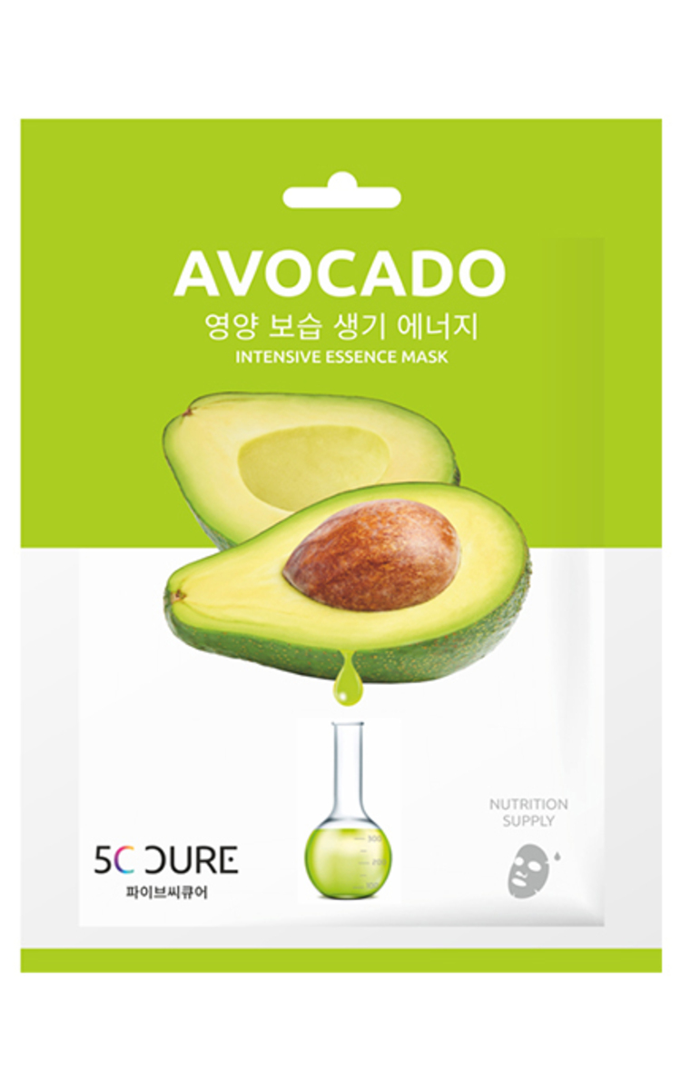 5C CURE, lakštinė veido kaukė su avokadų ekstraktu, 1 vnt 1 vnt.