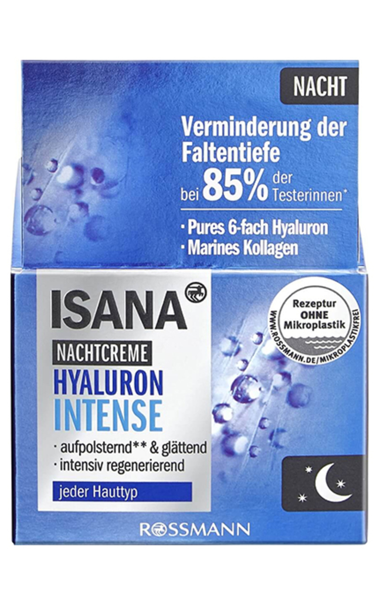 ISANA naktinis kremas su hialurono rūgštimi iškart sudrėkina odą, švelnina raukšles ir skatina odos atsinaujinimą nakties metu. Jūrinis kolagenas sulaiko drėgmę odoje, o jo apimtis padidėja iki 10 kartų. Skirtingo dydžio hialurono rūgšties molekulės intensyviai paskirsto drėgmę į skirtingus viršutinius odos sluoksnius. Jos suriša vandenį ir viršutiniuose odos sluoksniuose, ir ant odos paviršiaus, taip pripildydamos odą drėgmės. Raukšlės ir raukšlelės užpildomos iš vidaus. Labai smulkios hialurono rūgšties molekulės palaiko ląstelių atsinaujinimą. Vertingi augaliniai lipidai iš sviestmedžių ir vynuogių kauliukų aliejų užtikrina, kad oda atrodytų glotni, švelni kaip šilkas ir skatina odos atsinaujinimą nakties metu. Provitaminas B5 padeda nuraminti odą.
