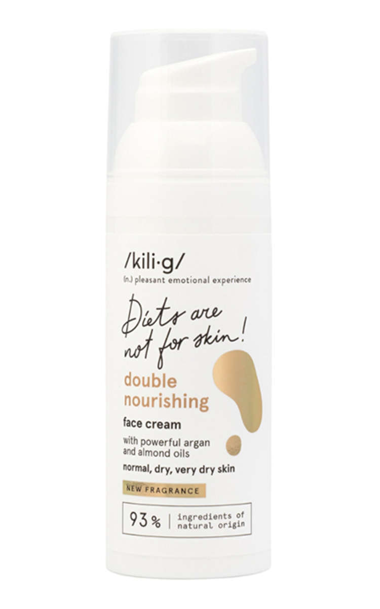 Tavo odai nebegalios jokios dietos, jeigu jau atradai šį dvigubą ir intensyvų odos maitinimo būdą! Įtrauk į kasdienį savo odos racioną šį natūraliais aliejais praturtintą veido kremą su dvigubo maitinimo efektu! Jo sudėtyje yra net du maitinantys aliejai – itin vertingas argano ir efektyviam odos maitinimui būtinas migdolų aliejus. Šią unikalią, dviejų aliejų sąveiką papildo fosfolipidai. Naudodama šį kremą, puikiai pasirūpinsi ir pamaitinsi savo sausą ar normalią veido odą. Dermatologų patikrinta.