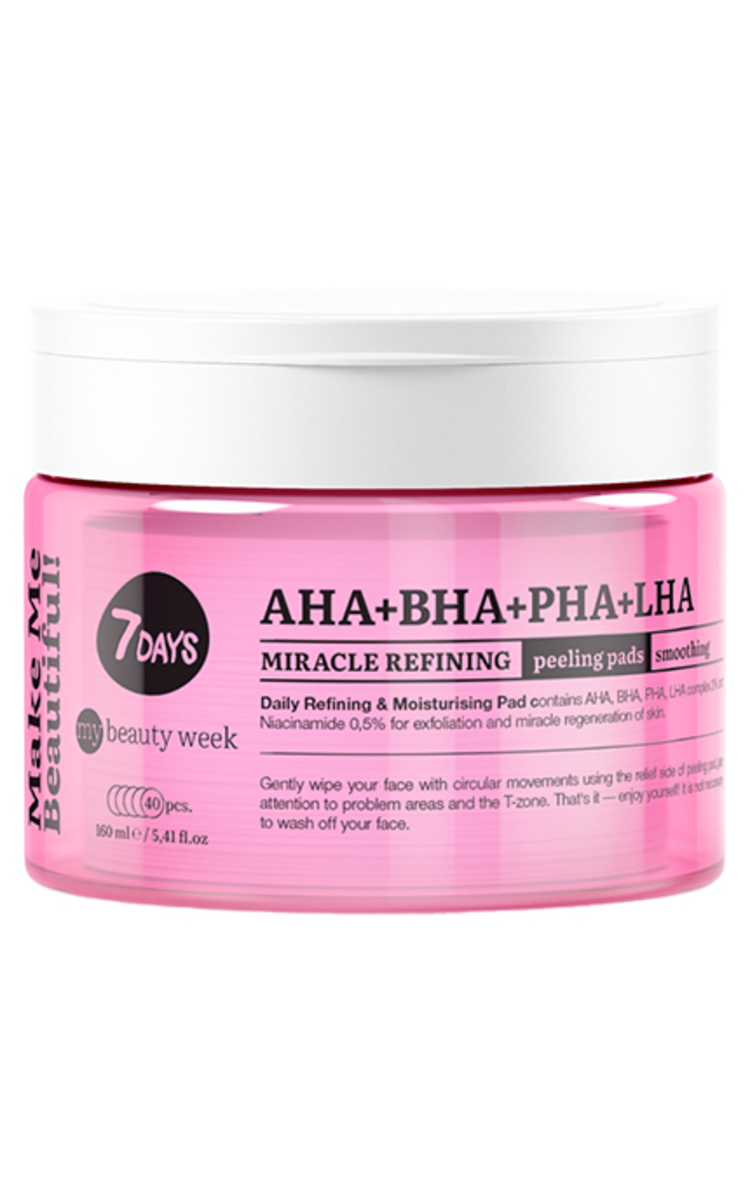 7DAYS, MY BEAUTY WEEK, šveičiamieji veido padeliai AHA+BHA+PHA+LHA, 50 vnt. 50 vnt.