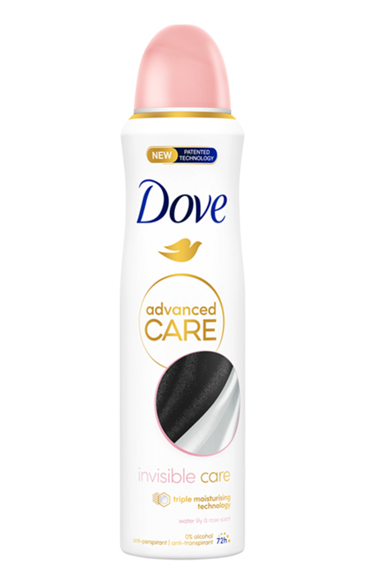 Pavargote nuo dezodoranto žymių ant drabužių? Laikas dėvėti rūbus su pasitikėjimu. Pristatome purškiamą dezodorantą antiperspirantą Dove Advanced Care Invisible Care, kuris nepalieka baltų žymių ar geltonų dėmių. Šis dėmių nepaliekantis antiperspirantas užtikrina 72 valandų apsaugą nuo prakaito ir nemalonaus kvapo, ir kartu yra švelnus odai. Galutinis efektas? Gaivus pažastų pojūtis ir malonus gėlių aromatas. Praturtintas mūsų pažangia formule su odą saugančiais ingredientais ir revoliucine technologija Triple Moisturising Technology, šis dezodorantas stiprina odos drėgmės barjerą, kad drėgmė liktų gilesniuose odos sluoksniuose. Rezultatas? Minkštesnė ir lygesnė pažastų oda.