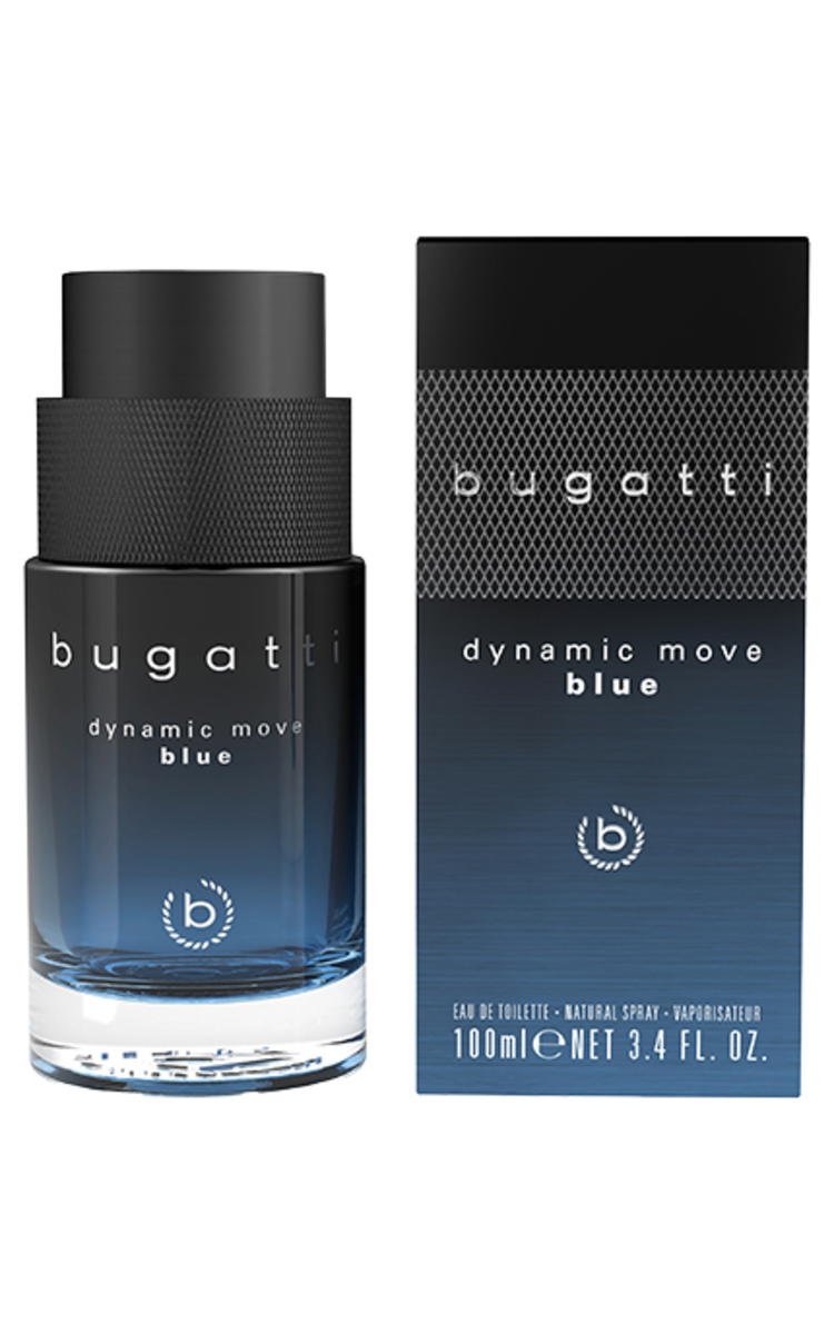 Įžanginis tualetinio vandens "Bugatti Dynamic Move Blue" aromato akordas pavergia svaiginančiu veržlumu, kurį sukuria subtiliai pikantiško šilto muskatų ir gaivaus citrinų kvapo dermė. Pasklidus viduriniam akordui – levandų ir vandens dvelksmui – apgaubia jūros kvapas. Aromato kompoziciją užbaigia mediena dvelkiantis pačiulių ir geismą žadinantis šiltas muskuso bei ambros kvapas.
