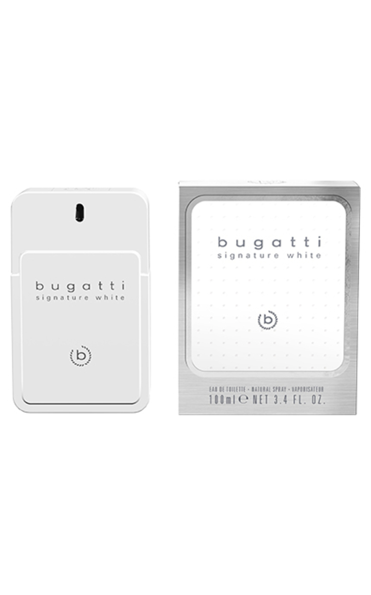 Laikui nepavaldi minimalistinė balta spalva dera su įvairiomis spalvomis ir sukuria nuostabų lengvumo pojūtį. Mediena, vaisiais ir ambra dvelkiantis tualetinis vanduo "Bugatti Signature White" – toks pat modernus, kaip ir matinis flakonas, kuriame jis slypi. Aromato kompoziciją pradeda bergamočių ir citrinų kvapas. Saldus slyvų ir žalių obuolių dvelksmas papildo įžanginį aromato akordą vaisių ir žalumos kvapo pustoniais. Viduriniame akorde susilieja stiprus pikantiškas kvapniųjų gvazdikmedžių lapų, šiltas cinamono, gaivus snapučių ir dūmais dvelkiantis šafrano kvapas. Aromatą vainikuoja ilgai išliekantis baigiamasis akordas – rafinuotas kedrų kvapas ir šiltas saldus vanilės bei ambros dvelksmas.