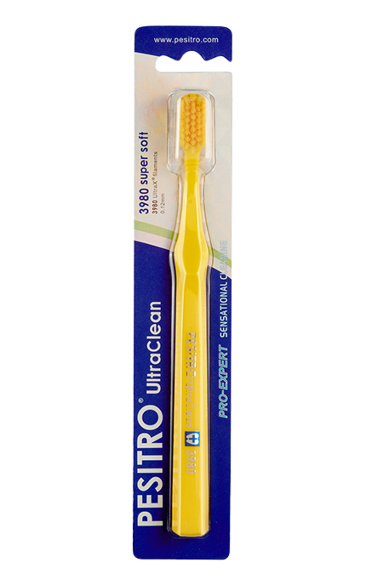PESITRO 3980 SuperSoft labai minkštas dantų šepetėlis puikiai tinkamas jautriems dantims. 0.12 mm storio Ultra X šereliai suteikia ypač švelnų pojūtį valymo metu.