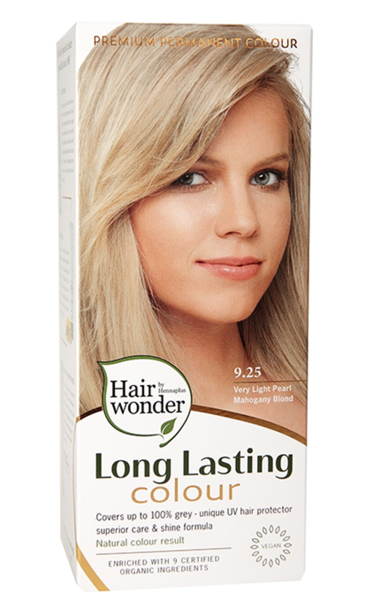 Atsiliepimai HAIRWONDER, ilgalaikiai plaukų dažai su 9 ekologiškais augaliniais ekstraktais, LABAI ŠVIESI BLONDINĖ RAUSVO PERLINIO ATSPALVIO 9.25, 100 ml.