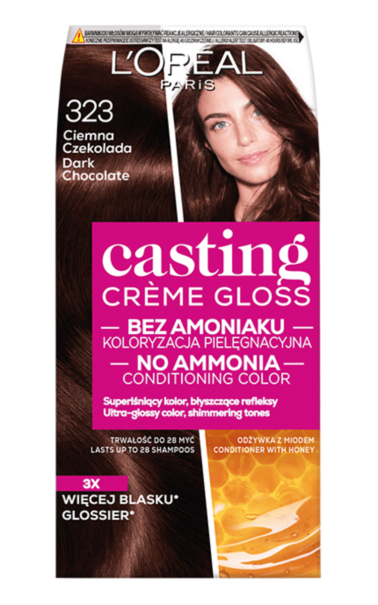 Atsiliepimai L′ORÉAL PARIS CASTING CREME GLOSS, pusiau ilgalaikiai plaukų dažai be amoniako, 323 Dark Chocolate, 1 vnt.