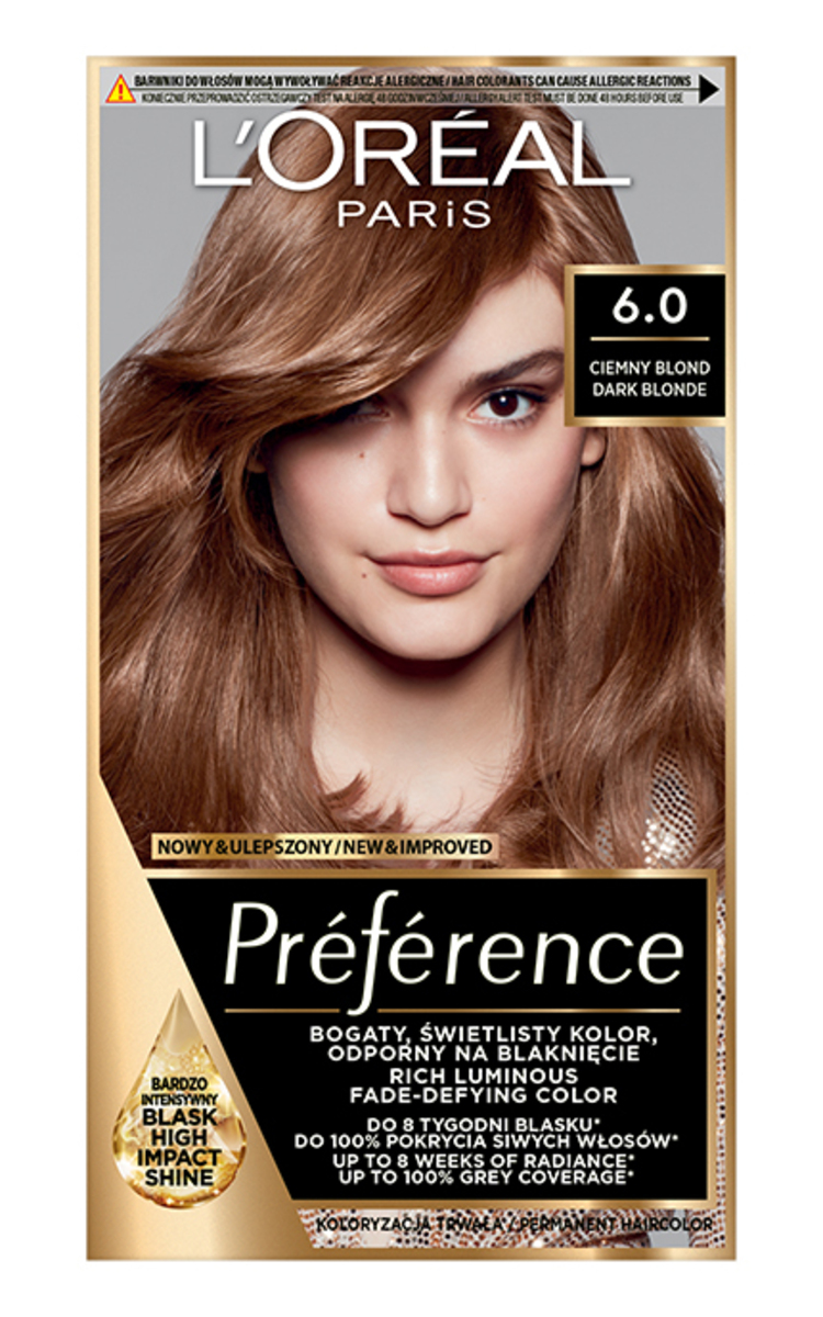Naujajame „Préférence“ pritaikyta sistema, apsauganti nuo išblukimo. Didelės koncentracijos ilgalaikiai plaukų dažai, esantys naujoje gelio formulėje su aliejumi, suteikia iki 8 savaičių labai intensyvios, žvilgančios ir išraiškingos spalvos**. Iki 100 % padengia žilus plaukus*. Tinka visų tipų plaukams. Iki 8 savaičių ryškios spalvos* ir unikalaus gėlių kvapo. Blizgesį saugantis kondicionierius praturtintas UV filtru ir vitamino E dariniu. Naudokite jį kartą per savaitę, kad išlaikytumėte spalvos žvilgesį. Naujasis „Préférence“ siūlo aukščiausios kokybės produktus, įkvėptus profesionalaus dažymo, kad namuose pasiektumėte dar geresnių rezultatų. Naujoji, želė konsistencija, neblunkanti, dar geriau padengia plaukų pluoštus, kad spalva būtų švytinti ir ilgai išliktų per trumpesnį laiką. Dabar jau galima išskalauti vos po 25 minučių.