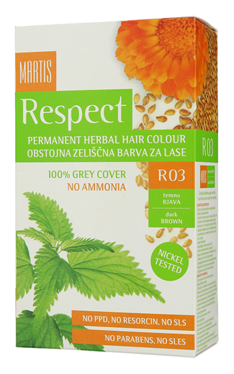 279753 MARTIS RESPECT, ilgalaikiai plaukų dažai su natūraliais komponentais, 03 Tamsiai ruda, rink.