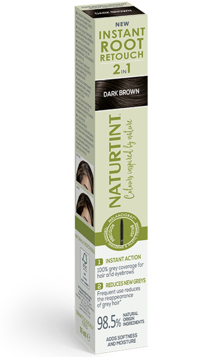 NATURTINT® 2in1 Instant Root Retouch Dark Brown – geriausiai tinka 2N ir 3N atspalviams.