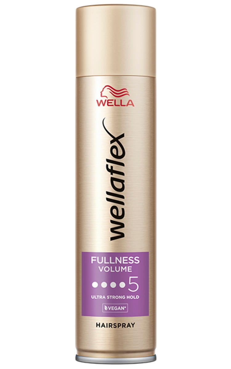 Wellaflex Fullness Volume plaukų lakas suteikia ploniems ir prigludusiems plaukams daugiau apimties bei itin stiprią fiksaciją, išlaikančią šukuoseną iki 48 valandų.