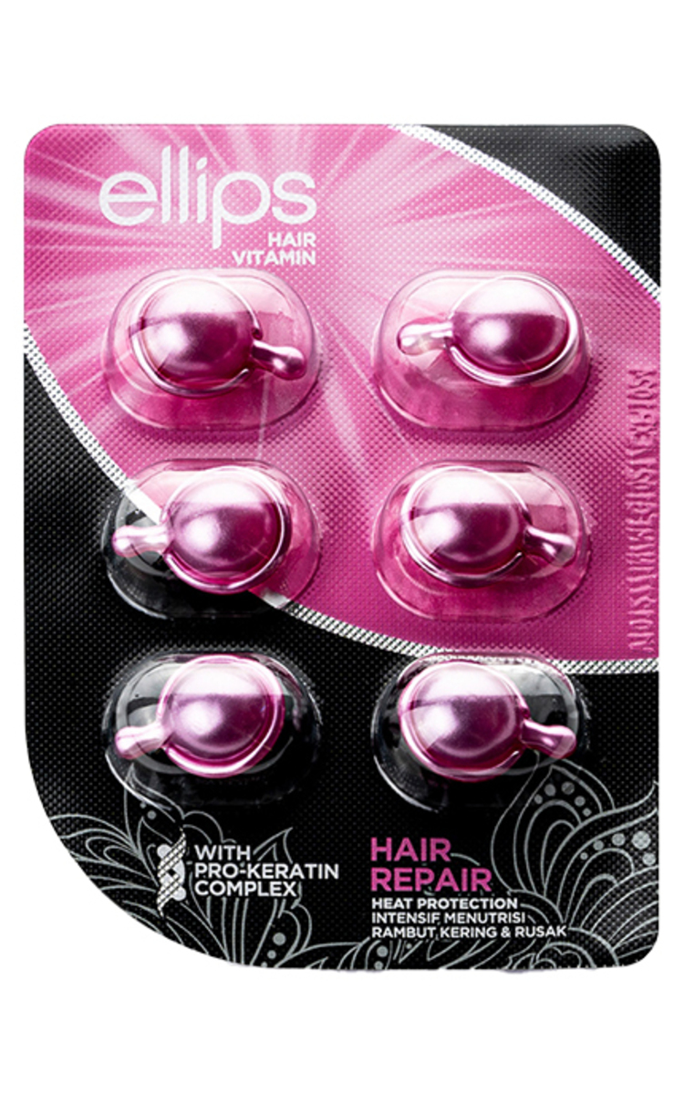 ELLIPS, HAIR REPAIR PRO KERATIN, tepami vitaminai pažeistiems plaukams su keratinu, 6 kapsulės 6 vnt.