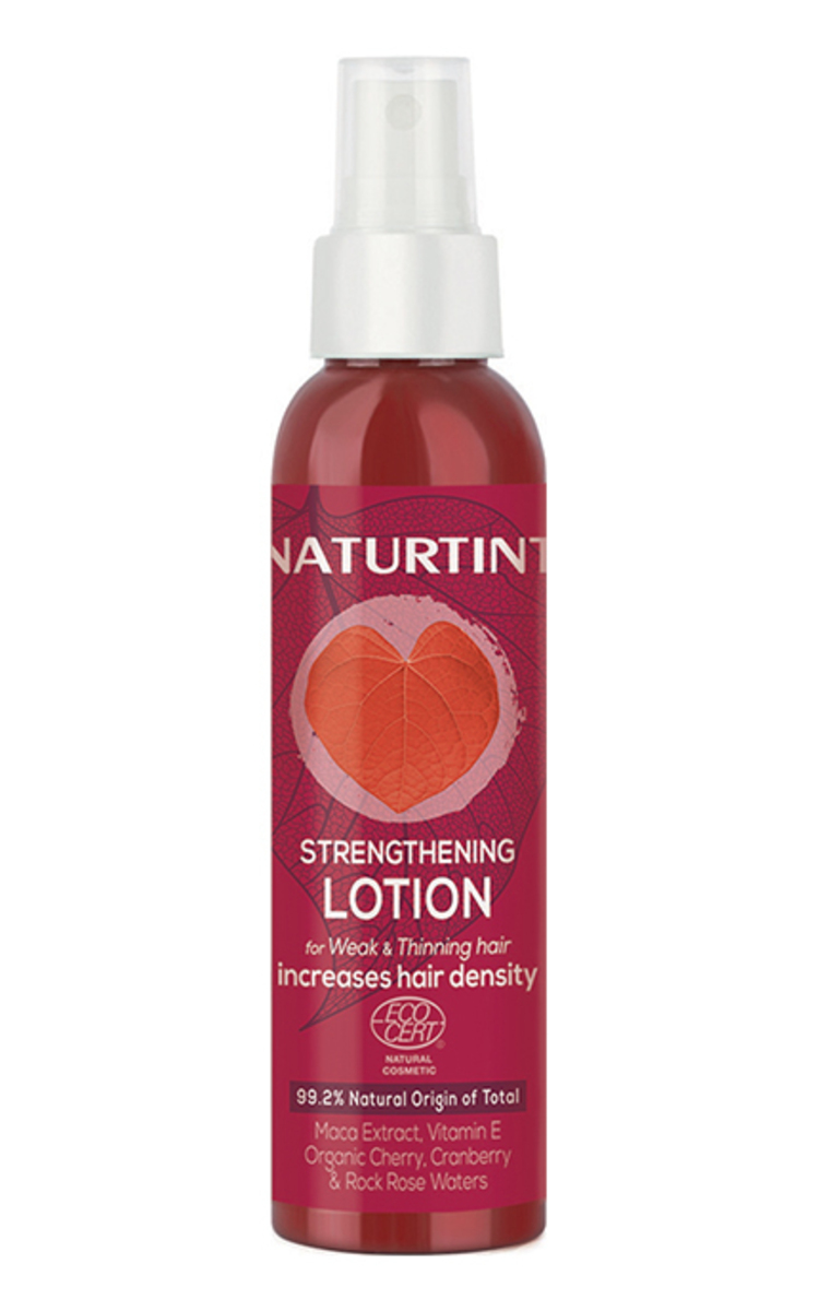 NATURTINT® – natūraliai gražių plaukų priežiūros sistema. Natūralus nenuplaunamas losjonas nuo plaukų slinkimo specialiai sukurtas kasdienei silpnų ir slenkančių plaukų priežiūrai. Rezultatas – stipresni, mažiau slenkantys, tankesni ir blizgantys plaukai. Sudėtyje 99.2% natūralios sudedamosios medžiagos. Su natūraliais ir ekologiškais augalų aliejais bei ekstraktais. Peruvinės pipirnės (maca) ekstraktas skatina plaukų augimą, apsaugo plaukus nuo žalingo aplinkos poveikio ir juos stiprina. Vyšnių ir mėlynių hidrolatai suteikia antioksidacinę apsaugą, pagerina mikrocirkuliaciją plaukų folikuluose. Gauruotųjų švitrūnų hidrolatas valo galvos odą. Praturtintas vitaminu E, kuris dėl savo antioksidacinių savybių saugo galvos odą. Sertifikuota ECOCERT, kaip natūrali kosmetika. Dermatologų patikrinta.