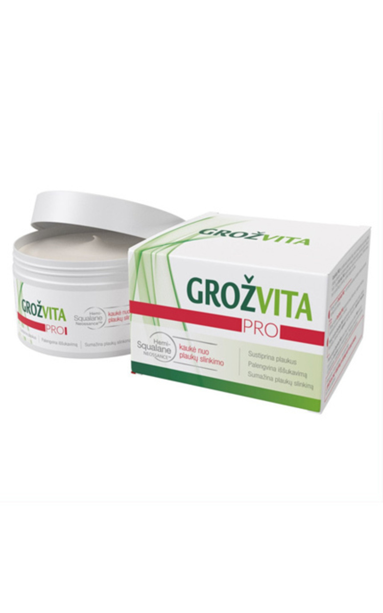Grožvita PRO yra profesionali produktų linija, sukurta tiems, kurie kenčia nuo pernelyg didelio plaukų slinkimo ir nori paskatinti naujų plaukų augimą – tokių, kad būtų stiprūs, tankūs ir tvirti. Liniją Grožvita PRO papildė plaukų kaukė, kuri ne tik sustiprina, drėkina plaukus, bet ir sumažina jų slinkimą, suteikia daugiau apimties.