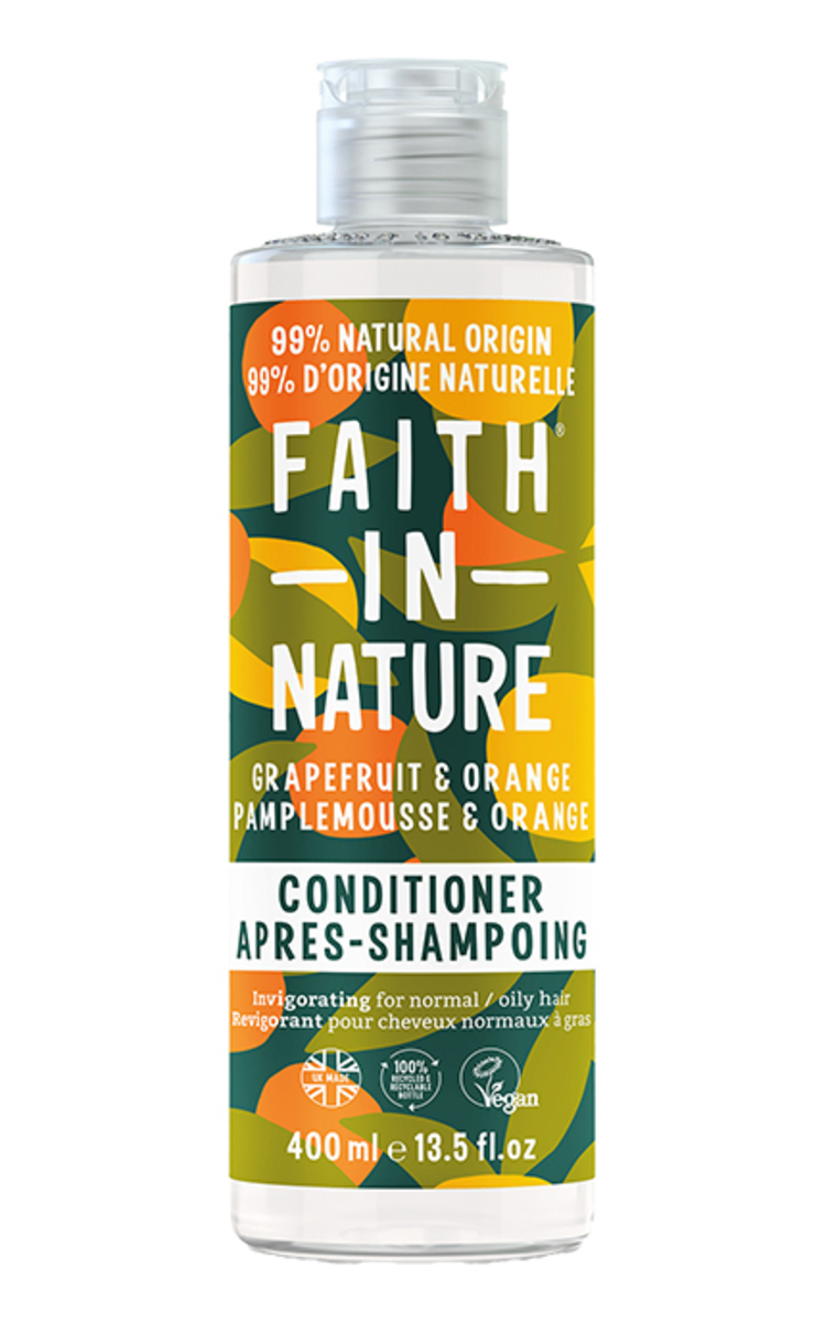 Faith In Nature energiją suteikiantis kondicionierius su greipfrutų ir apelsinų aliejais Grapefruit&Orange. Normaliems/ riebiems plaukams. 100% natūralios kvapiosios medžiagos. 99% sudedamųjų dalių yra natūralios kilmės. * pažymėtos sudedamosios dalys yra augalinės kilmės, ** pažymėtos sudedamosios dalys yra ekologiškos.Tinka veganams.