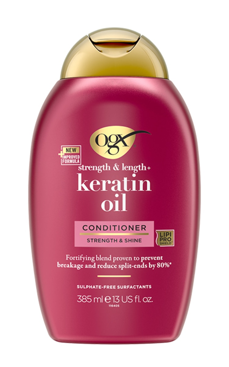 Atsiliepimai OGX, stiprinantis kondicionierius su keratino aliejumi, 385 ml.