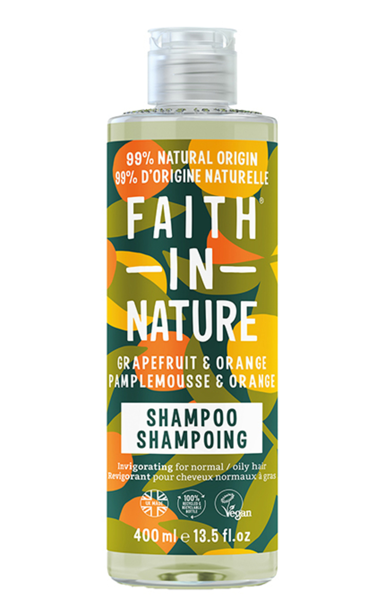 Faith In Nature energiją suteikiantis šampūnas su greipfrutų ir apelsinų aliejais Grapefruit&Orange. Normaliems/ riebiems plaukams. 100% natūralios kvapiosios medžiagos. 99% sudedamųjų dalių yra natūralios kilmės. * pažymėtos sudedamosios dalys yra augalinės kilmės, ** pažymėtos sudedamosios dalys yra ekologiškos. Tinka veganams.
