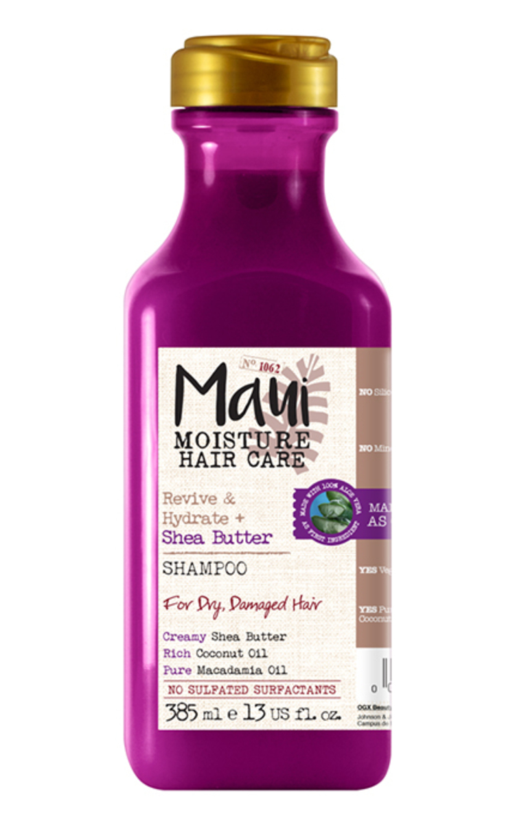 Šampūno Maui Moisture sudėtyje yra unikalus alavijų mišinys, papildytas tyru kokosų vandeniu. Sausiems ir pažeistiems plaukams. Kreminis taukmedžio sviestas. Turtingos sudėties kokosų aliejus. Tyras makadamijų aliejus. Be sulfatinių paviršinio aktyvumo medžiagų. Pagaminta iš 100 % alavijo, kuris yra pagrindinė sudedamoji dalis. Be mineralinio aliejaus. Veganiškas. Tyras kokosų vanduo.