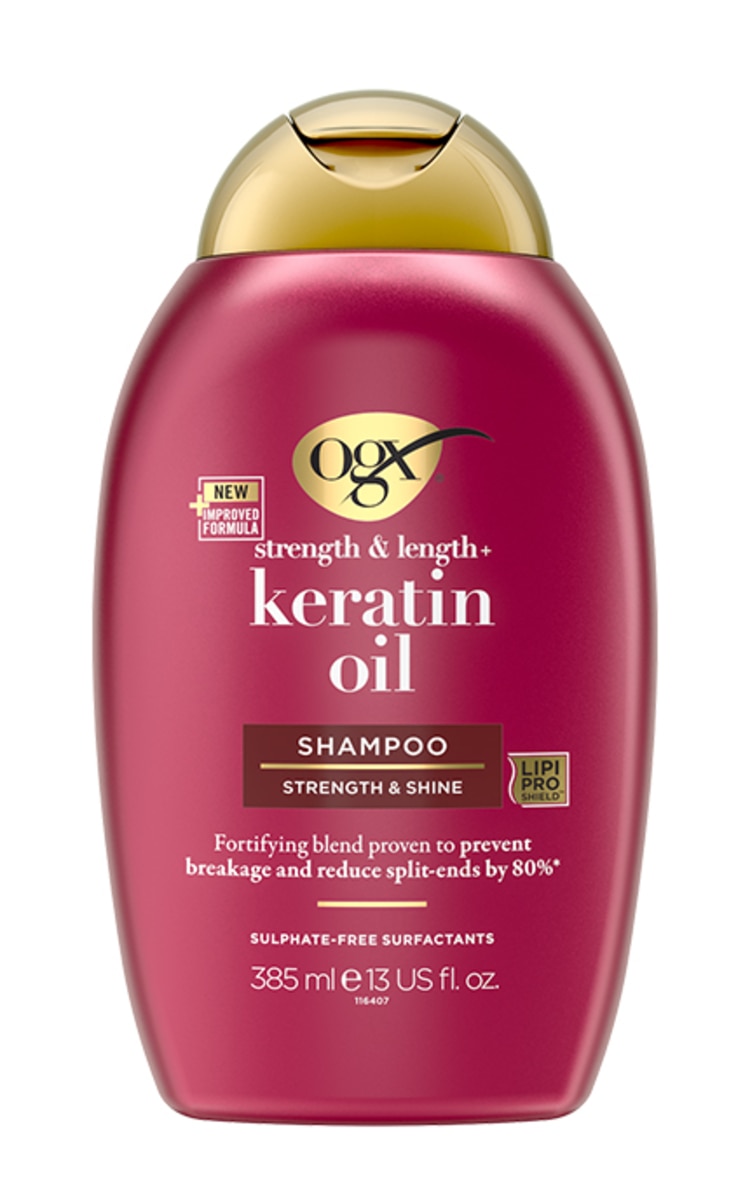 Atsiliepimai OGX, stiprinantis šampūnas su keratino aliejumi, 358 ml.