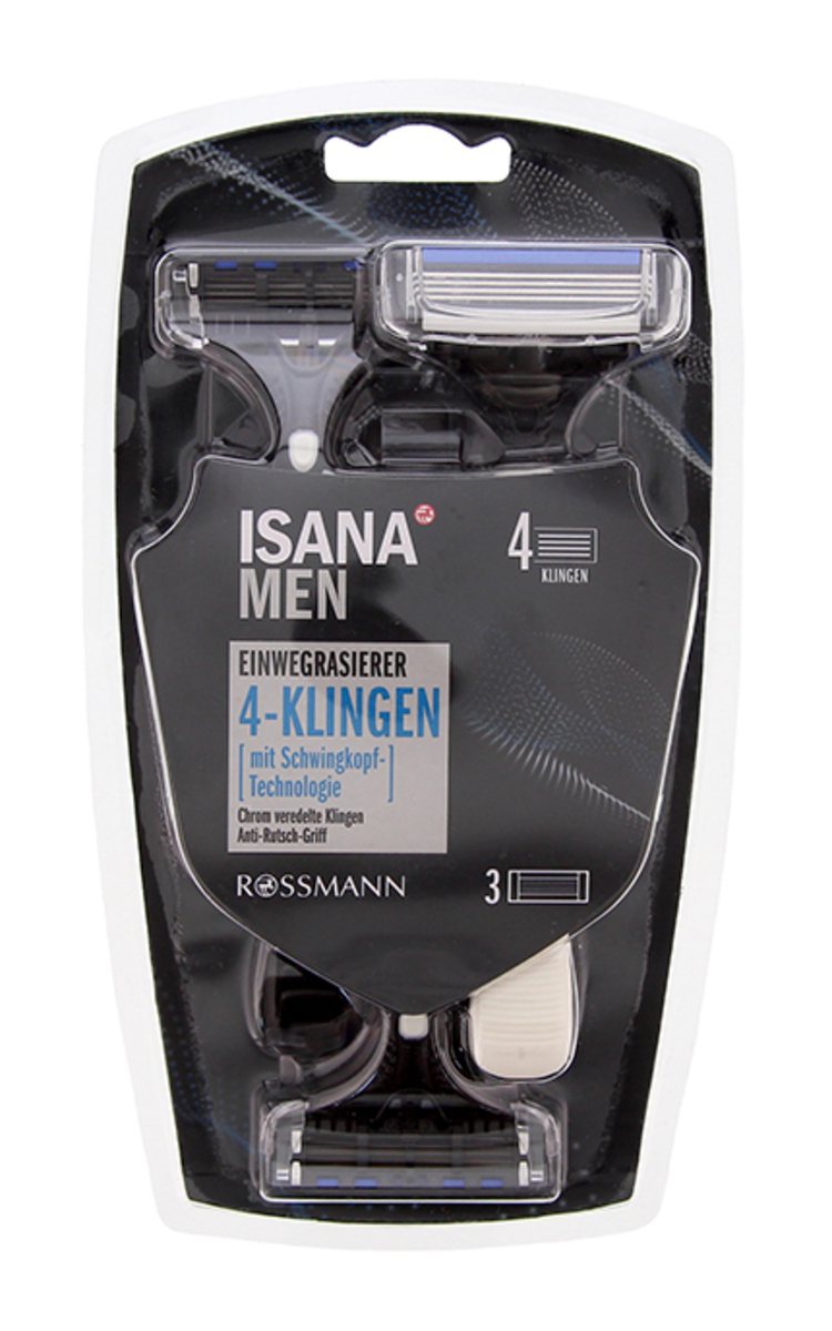 ISANA, MEN, 4 ašmenų vienkartinis skustuvas, 3 vnt. 1 vnt.